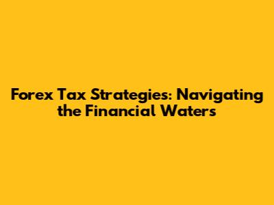 Forex Tax Strategies: Navigating The Financial Waters