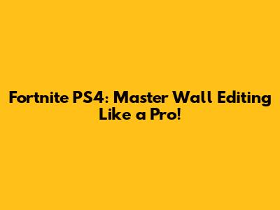 By following these tips and practicing regularly, you'll be well on your way to mastering wall editing on Fortnite for PS4. Good luck, and happy building!