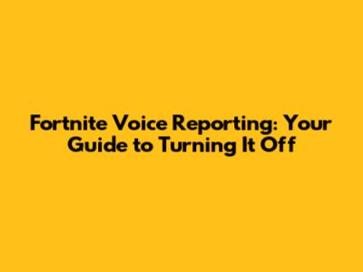 Fortnite Voice Reporting: Your Guide To Turning It Off