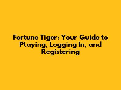 Fortune Tiger: Your Guide To Playing, Logging In, And Registering