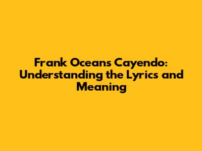 Frank Ocean's Cayendo: Understanding The Lyrics And Meaning