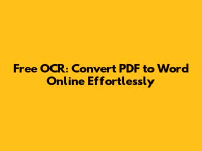 Free OCR: Convert PDF To Word Online Effortlessly