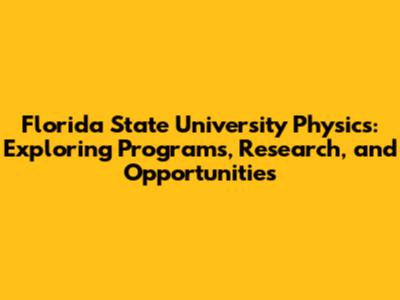 FSU Physics: Programs, Research, And Opportunities