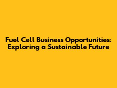 Fuel Cell Business: Exploring Lucrative Opportunities