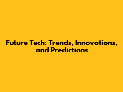Future Tech: Trends, Innovations, And Predictions