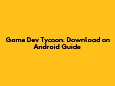 Game Dev Tycoon: Download On Android Guide