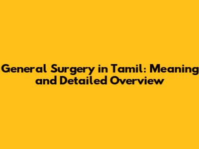 General Surgery In Tamil: Meaning And Detailed Overview