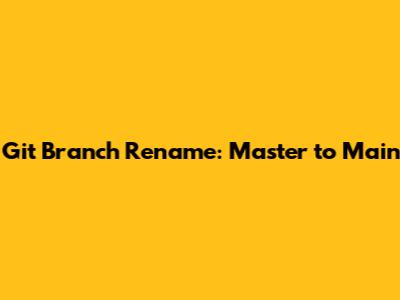 Git Branch Rename: Master To Main