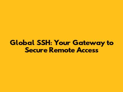 Global SSH: Your Gateway To Secure Remote Access