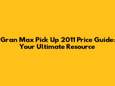 Gran Max Pick Up 2011 Price Guide: Your Ultimate Resource