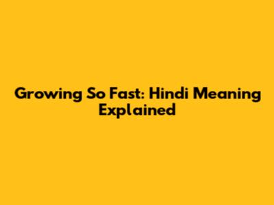What Does "Growing So Fast" Mean in Hindi?