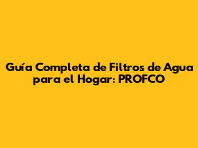 Guía Completa De Filtros De Agua Para El Hogar: PROFCO