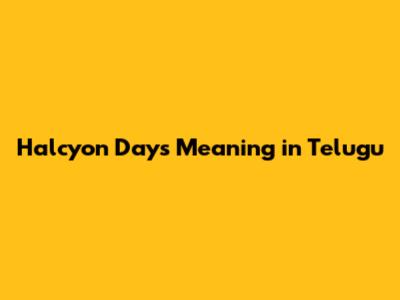 Halcyon Days Meaning In Telugu: Find Out Here
