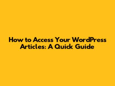 How To Access Your WordPress Articles: A Quick Guide