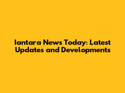 Iantara News Today: Latest Updates And Developments