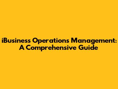IBusiness Operations Management: A Comprehensive Guide