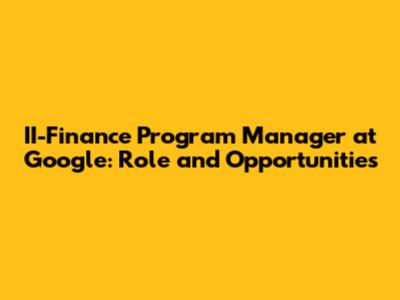 II-Finance Program Manager At Google: Role And Opportunities