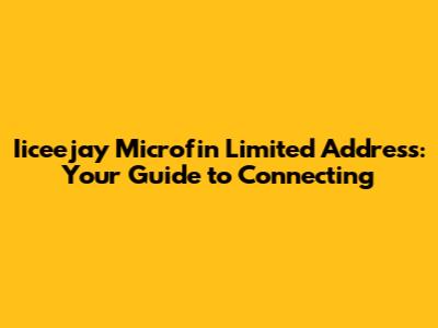 Hey guys! Are you trying to get in touch with Iiceejay Microfin Limited and need their address? You've come to the right place! In today's world, microfinance institutions play a crucial role in empowering individuals and small businesses, and knowing how to reach them is super important. Let's dive into everything you need to know about finding the address of Iiceejay Microfin Limited.