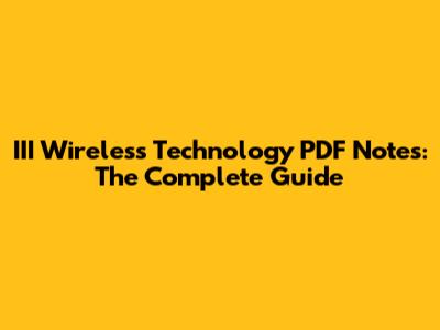 III Wireless Technology PDF Notes: The Complete Guide