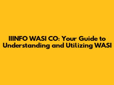IIINFO WASI CO: Your Guide To Understanding And Utilizing WASI