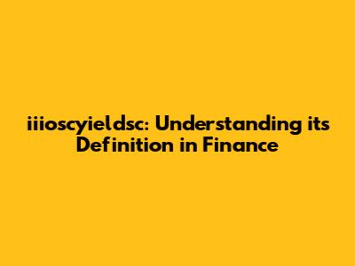 Iiioscyieldsc: Understanding Its Definition In Finance