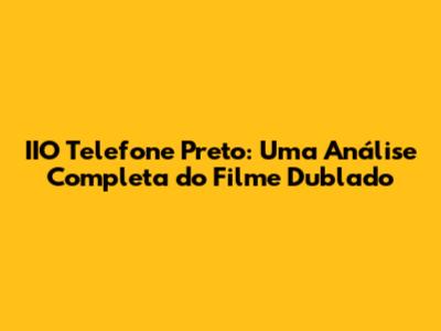 IIO Telefone Preto filme dublado, uma produção cinematográfica que tem chamado a atenção de muitos cinéfilos, especialmente no Brasil. Mas por que esse filme tem gerado tanto burburinho? E o que o torna tão especial a ponto de merecer uma análise detalhada? Neste artigo, vamos mergulhar fundo no universo de "IIO Telefone Preto", explorando sua trama, personagens, dublagem e o impacto que teve no público.