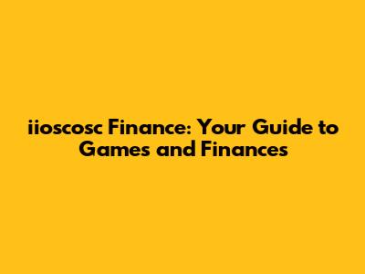 Iioscosc Finance: Your Guide To Games And Finances