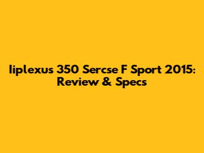 Let's dive into the Iiplexus 350 Sercse F Sport 2015, a car that might not be on everyone's radar but definitely deserves a closer look. We'll break down everything you need to know, from its performance and design to its features and overall value. Whether you're a car enthusiast or just looking for reliable information, this review is for you. Guys, buckle up, because we're about to get into the nitty-gritty details of this often-overlooked gem. Let's explore what makes the Iiplexus 350 Sercse F Sport 2015 a unique and compelling option in its class. We will cover all the crucial aspects that potential buyers or car enthusiasts would be interested in. Understanding the nuances of its engine performance, interior design, technological integrations, and safety features will provide a comprehensive overview. This ensures readers get a well-rounded perspective on what this model brings to the table. Also, we'll compare it against other cars in its segment so you can see how it stacks up, making this a one-stop guide for anyone curious about the Iiplexus 350 Sercse F Sport 2015. Remember, knowing the details is key, so let’s get started and uncover everything this car has to offer.