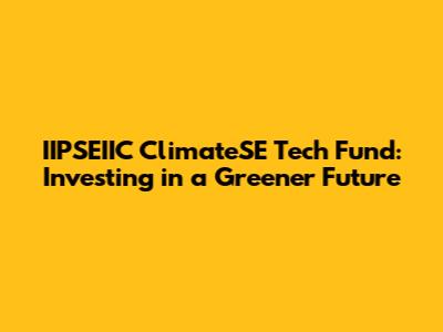 IIPSEIIC ClimateSE Tech Fund: Investing In A Greener Future