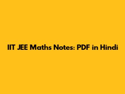 IIT JEE Maths Notes: PDF In Hindi