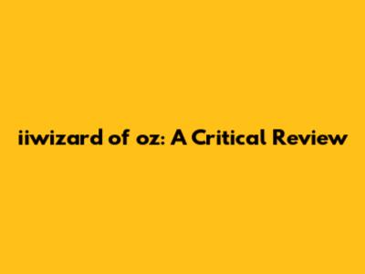 Iiwizard Of Oz: A Critical Review
