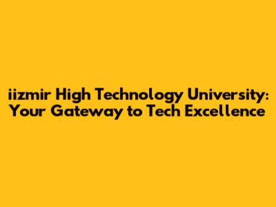 Iizmir High Technology University: A Tech Hub In Turkey