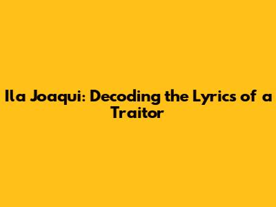 Ila Joaqui: Decoding The Lyrics Of A 'Traitor'