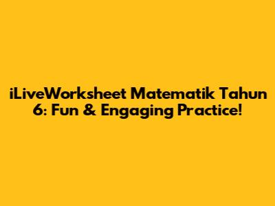 Hey guys! Are you looking for some awesome ways to boost your Tahun 6 Mathematics skills? Look no further! iLiveWorksheet is here to make learning math super fun and interactive. We're diving deep into why iLiveWorksheets are a fantastic resource for students, teachers, and parents. Get ready to explore how these worksheets can transform your approach to mathematics and help you ace those exams!