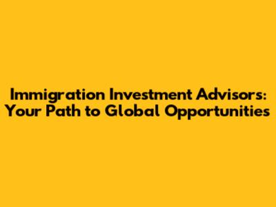 Immigration Investment Advisors: Your Path To Global Opportunities
