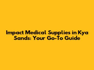 Impact Medical Supplies In Kya Sands: Your Go-To Guide