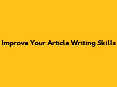 Improve Your Article Writing Skills