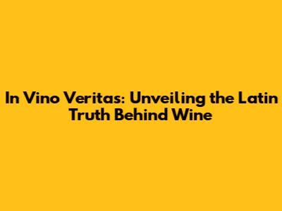 In Vino Veritas: Unveiling The Latin Truth Behind Wine