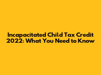 Hey guys! Let's dive into something super important for 2022: the Incapacitated Child Tax Credit. This isn't your average tax break, oh no. This is a lifeline for families dealing with the complexities of a child who has a severe disability. We're talking about a credit designed to help offset some of those extra costs that come with providing care and support for a child who can't physically or mentally care for themselves. It's a big deal, and understanding it can make a significant difference in your financial planning. So, buckle up, because we're going to break down exactly what this credit is, who qualifies, and how you can snag it for the 2022 tax year. We want to make sure you're not missing out on any support you're entitled to, especially when you're already juggling so much. This credit aims to provide some much-needed relief, acknowledging the unique challenges and expenses that come with raising a child with significant needs. It's about fairness and recognizing the extra effort and resources required. Think of it as a helping hand from the government to ease the burden, allowing you to focus more on your child's well-being and less on the mounting bills. We'll cover everything from the eligibility criteria to the actual amount you might be able to claim. It’s crucial to get this right, so let’s get started on demystifying the Incapacitated Child Tax Credit 2022.