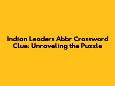 Indian Leaders Abbr Crossword Clue: Unraveling The Puzzle