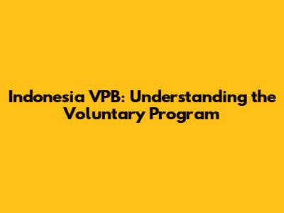 Indonesia VPB: Understanding The Voluntary Program