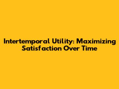 Intertemporal Utility: Maximizing Satisfaction Over Time