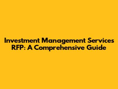 Investment Management Services RFP: A Comprehensive Guide
