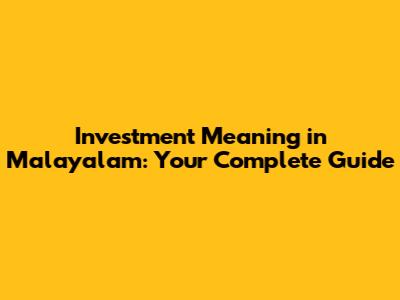 Investment Meaning In Malayalam: A Comprehensive Guide