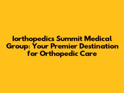 Iorthopedics Summit Medical Group: Your Guide To Orthopedic Excellence
