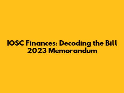 IOSC Finances: Decoding The Bill 2023 Memorandum