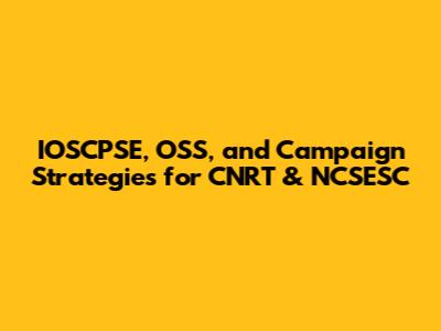 IOSCPSE, OSS, And Campaign Strategies For CNRT & NCSESC