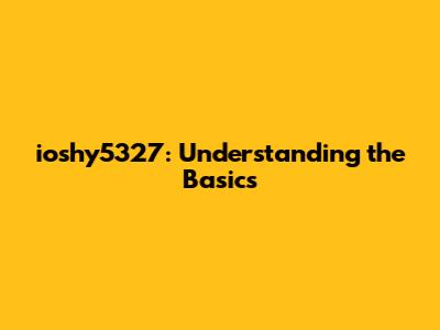 Ioshy5327: Understanding The Basics