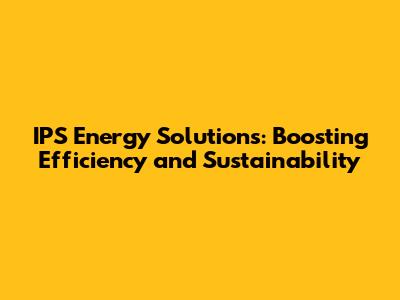 IPS Energy Solutions: Boosting Efficiency And Sustainability