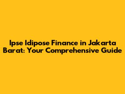 Ipse Idipose Finance In Jakarta Barat: A Complete Guide